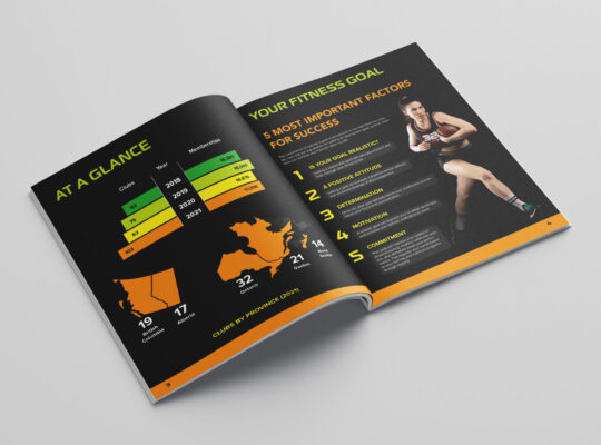Logo, layout, infographics and graphs for a fitness manual of a health and wellness consulting network, specializing in individual programs, personal training and nutritional counseling. Tools: InDesign, Photoshop, Illustrator. Links: Website Preview.