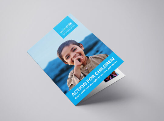 Information brochure that gives an overview of some of UNICEF’s humanitarian work with children, created to be visually appealing while maintaining UNICEF’s brand standards. Tools: InDesign, Photoshop