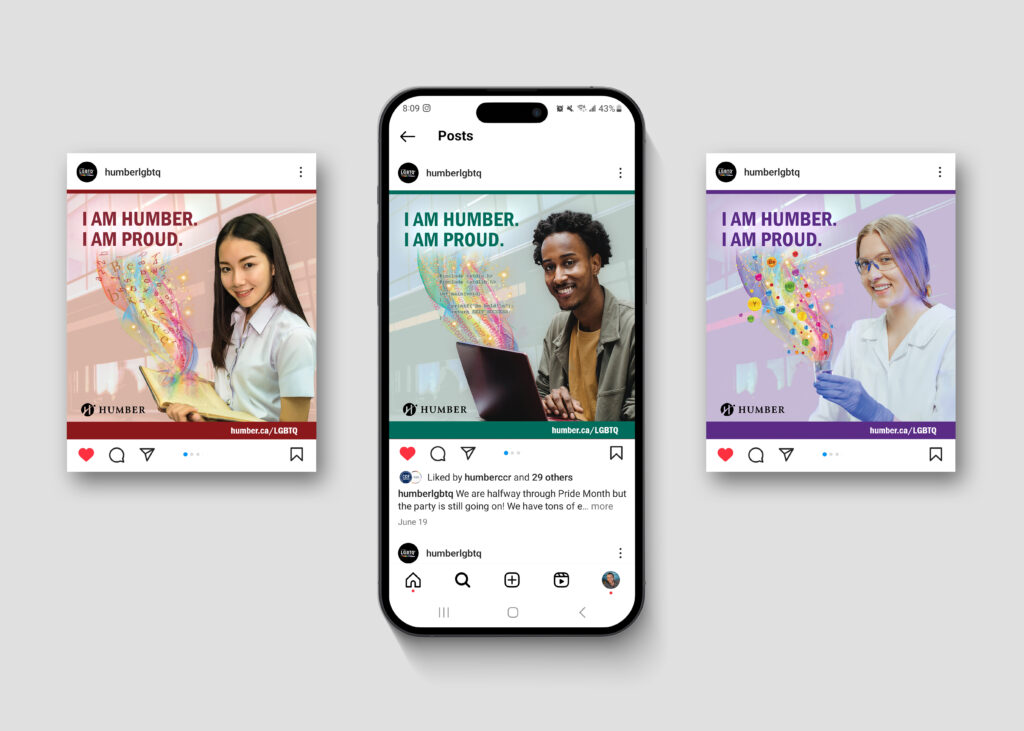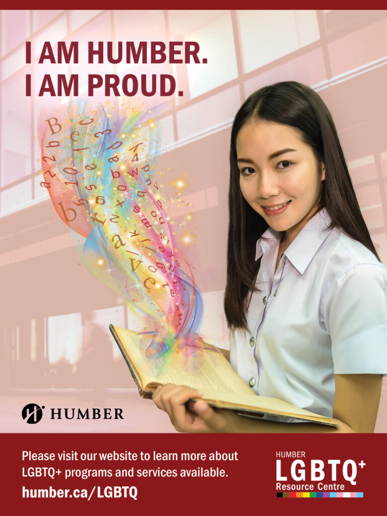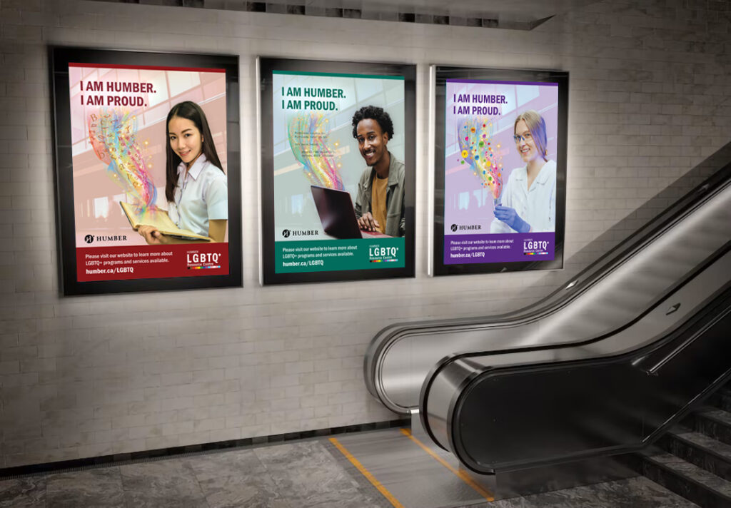 Ad Campaign created for print and social media to promote the Humber LGBTQ+ Resource Center at Humber College, Toronto, celebrating diversity and inclusivity.