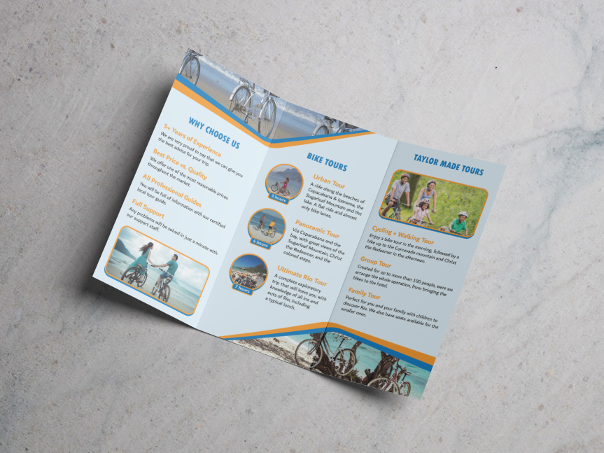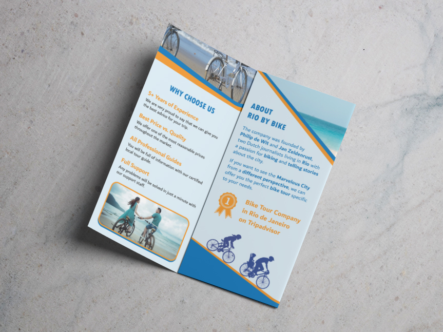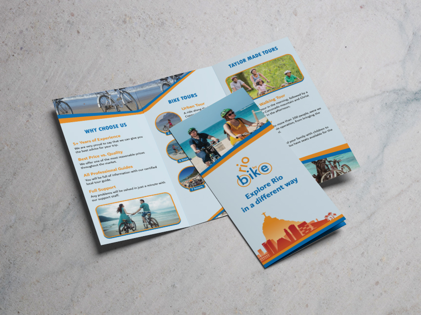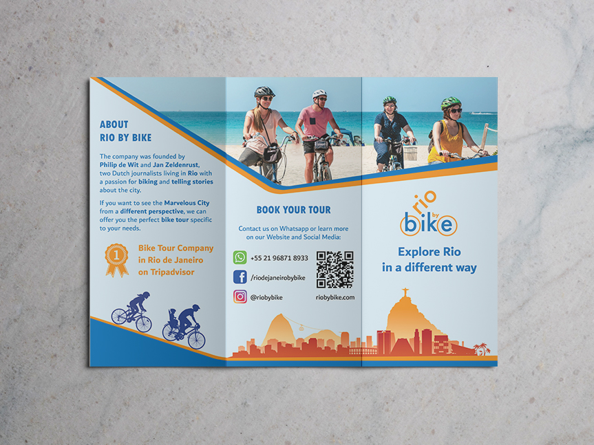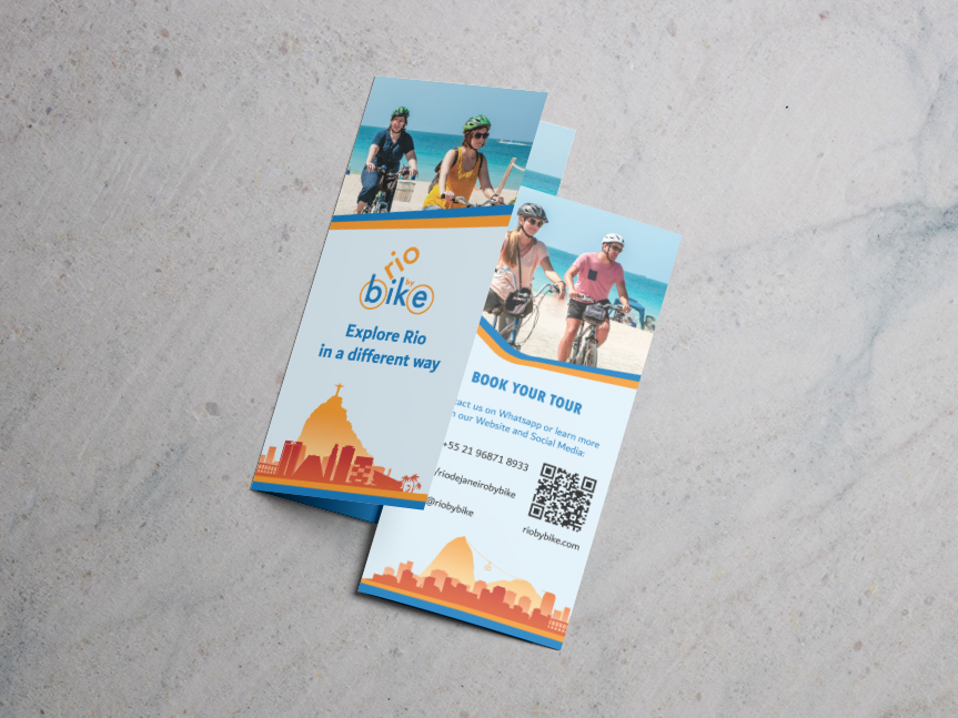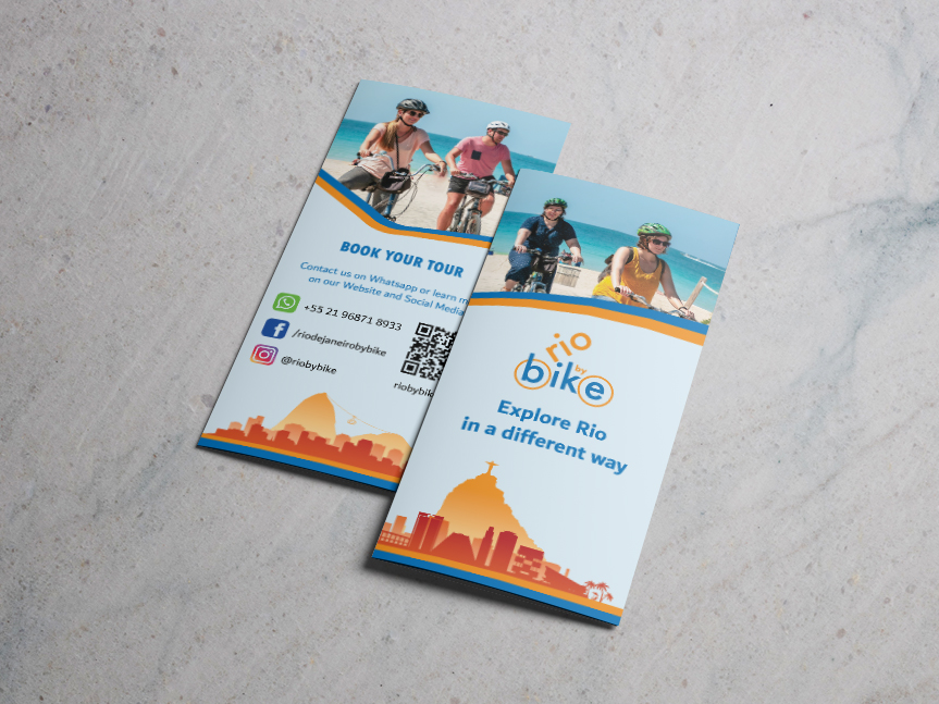 Logo and Trifold brochure designed for “Rio By Bike”, a bike tour company in Rio de Janeiro, Brazil, that allows tourists from all over the world to explore the Marvelous City in a different way.